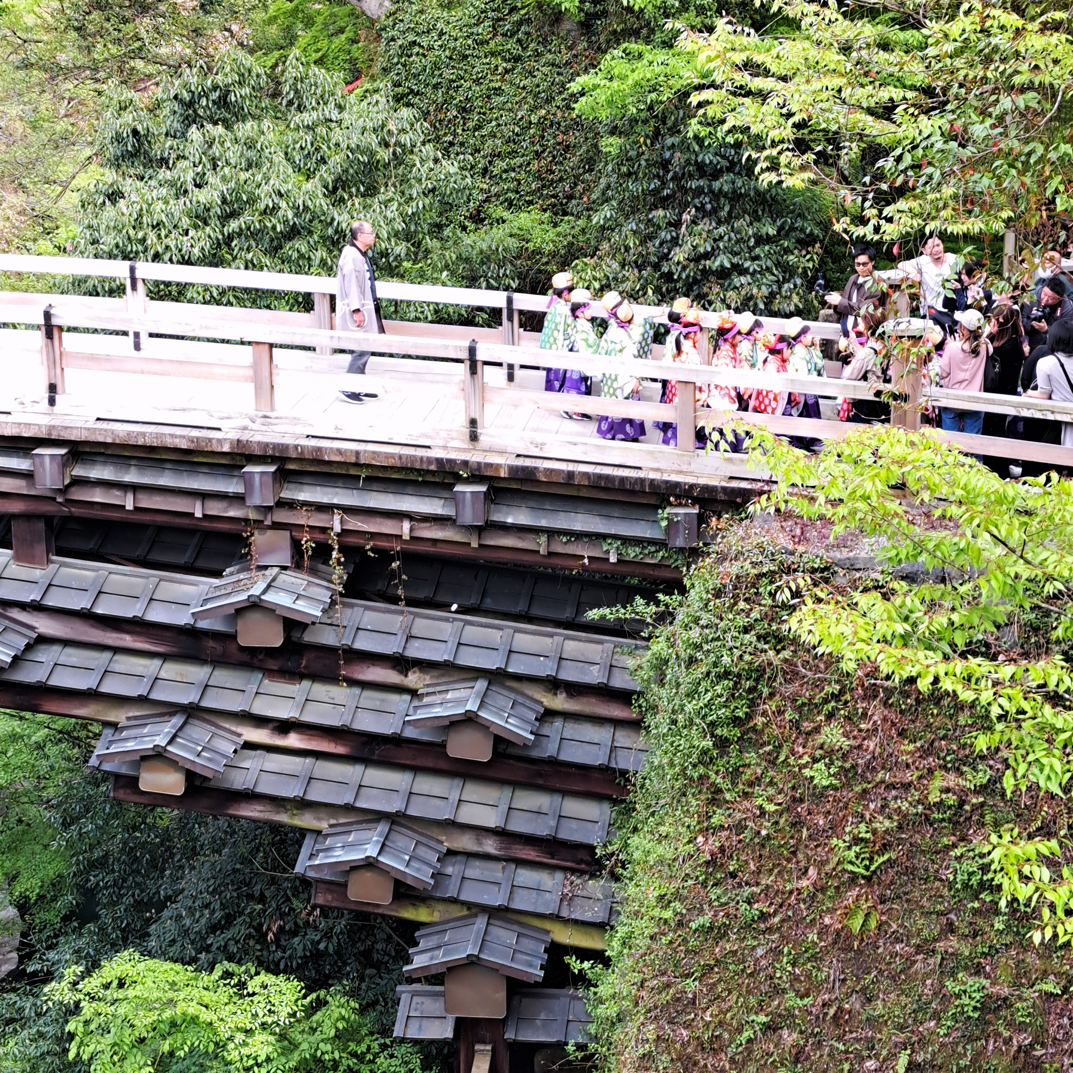 見どころとなる地元の新一年生による愛らしい「稚児(ちご)行列」では、鮮やかな衣装に身を包んだ子どもたちが山車(だし)やチンドン屋の賑やかな音色とともに国道を練り歩き、歴史ある猿橋を渡る姿は見る人みんなを笑顔にしてくれます。