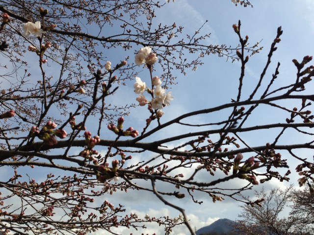 このところの暖かい気温で、大月市内の桜もあちこちで開花し始めました!!