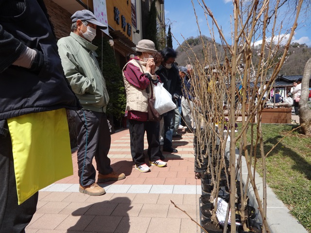 時間前から桜の苗木のプレゼントを楽しみにした方たちが