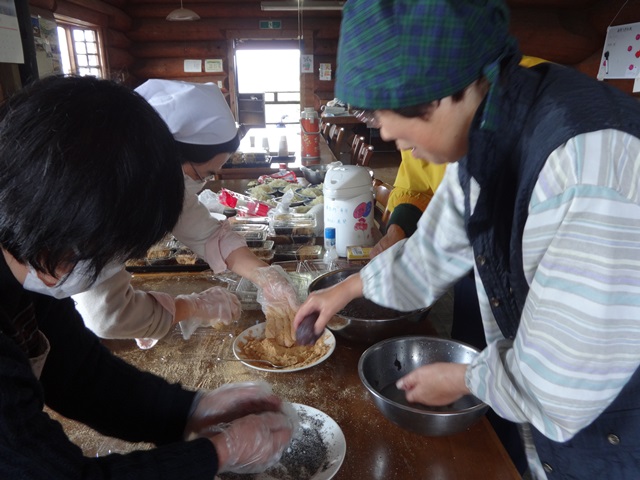 美味しいあんこときな粉包む作業を忙しそうに