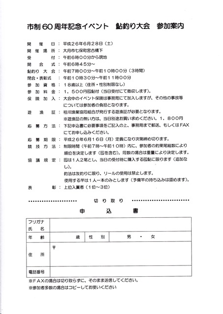 市制60周年記念イベント!!!鮎釣り大会のお知らせ(2014.5.17)