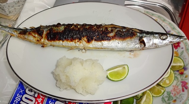 炭火で焼いた今が旬のサンマの塩焼き・・ビール片手に嬉しい一品!!