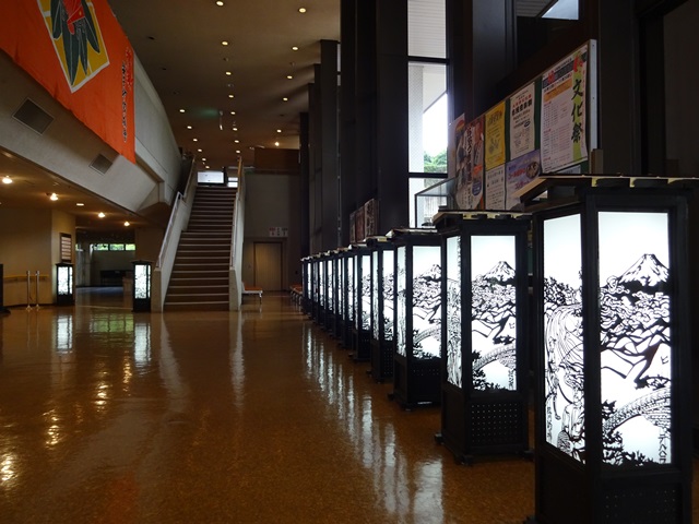 会場入り口から置かれた行燈には、それぞれに大月の様々な風景が描かれていて