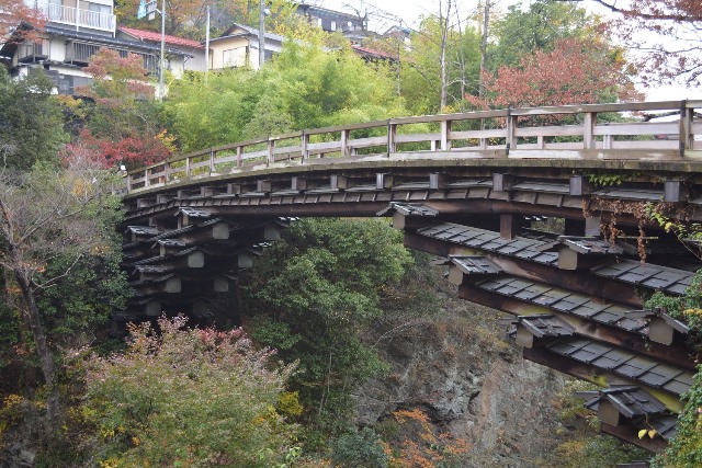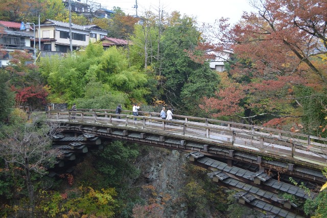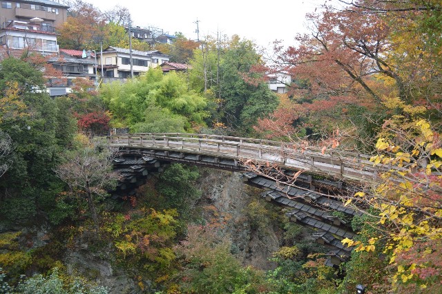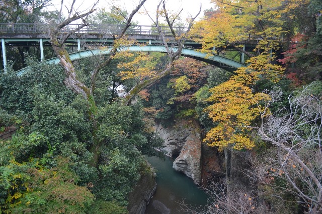 雨あがりの本日の猿橋の紅葉状況の写真をいただきましたのでご覧ください。