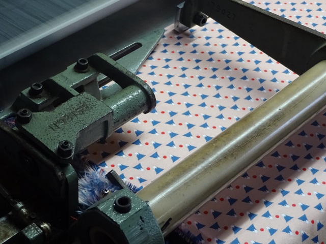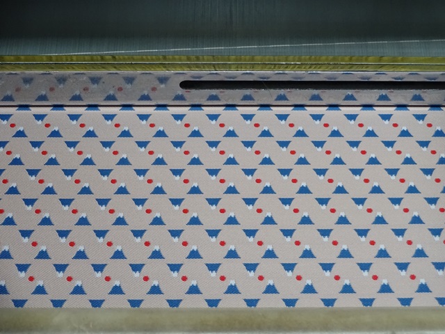 まさに富士山柄の生地を織っている所を見せていただきました。