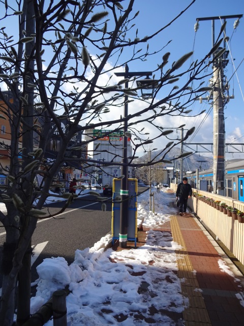 まだまだあちらこちらに雪は残っています。駅周辺の様子です。