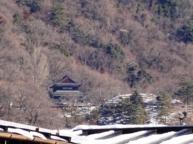 岩殿山は一見雪が無いように見えますが