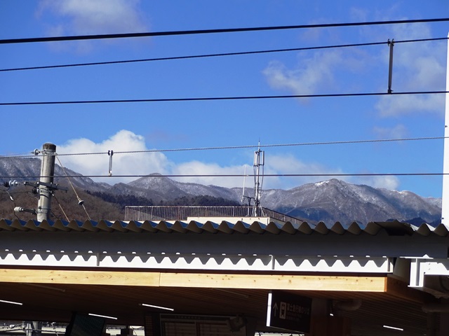 今日は青空が広がり午後1時現在気温は12度。寒さが緩んでいる大月駅周辺です。