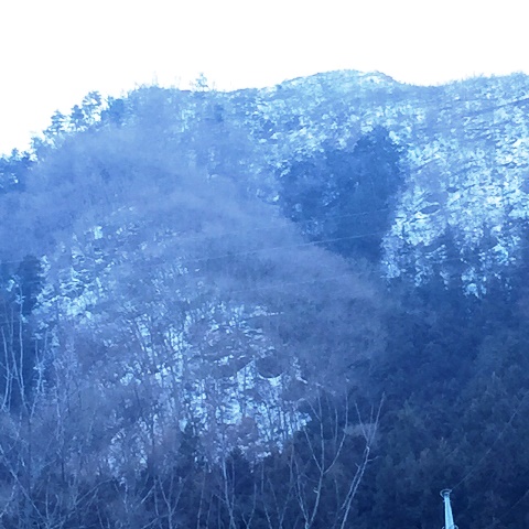 低山ですが、北側の斜面はこんな風に山肌は真っ白のままです。