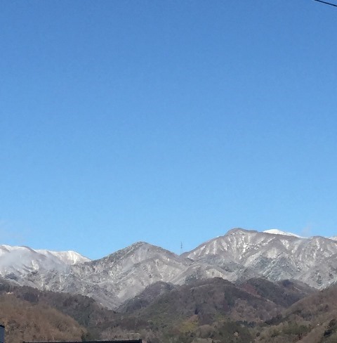山々はその日も雪となり、翌朝は雪化粧の山並みが青空に輝いていました。