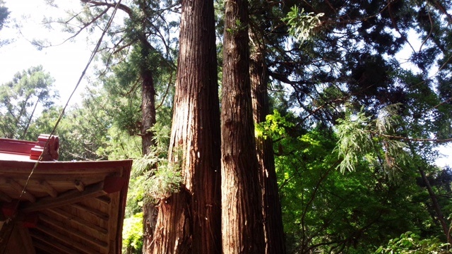 こちらは子安子育ての杉。妊婦がこの神社にお参りして、この神木の杉皮を剥いて