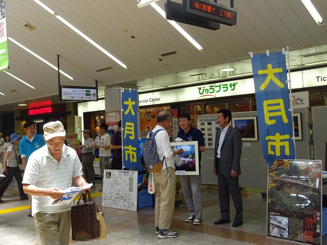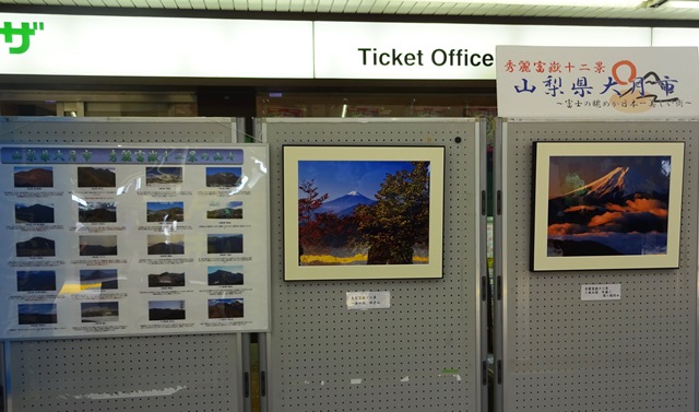 駅の改札正面には特設コーナーも設置され大月市をPR