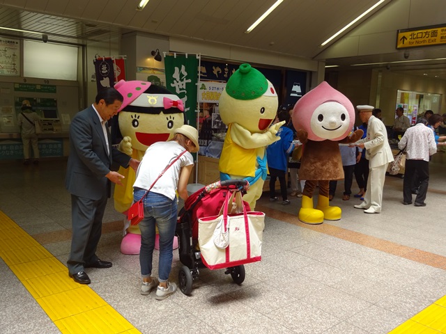 大月市長、大月駅長、おつたろうくん、おつけちゃん、ももずきんちゃんも駆け付けてくれ