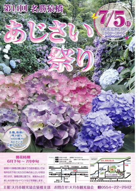 本日予定されていました『第14回名勝猿橋 あじさい祭り』は雨のため中止となりました。