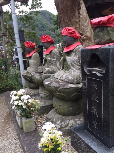 六地蔵様も赤が映えています。