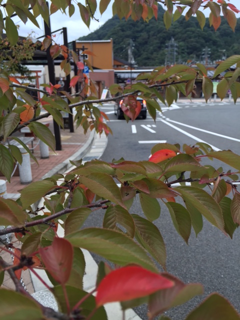 桜の葉も少し紅葉している大月の駅前。