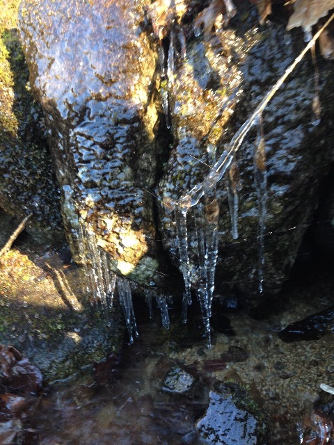 歩きにくくなりそうとのこと。 水場にはつららが。