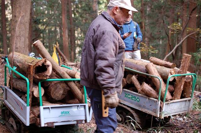 薪割機での薪割りなどを経て、沢山の薪が出来ていきます。