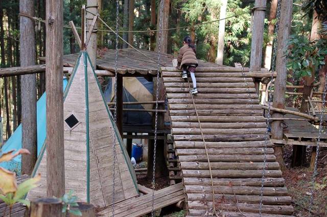 ろはすの森にはテントあり、ブランコあり、アスレチックあり