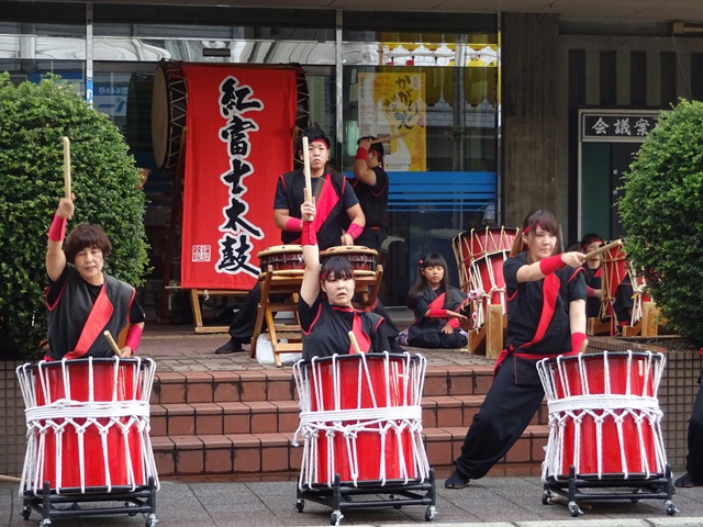 沿道では紅富士太鼓による演奏が繰り広げられお祭りを盛り上げます。