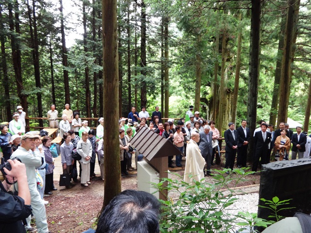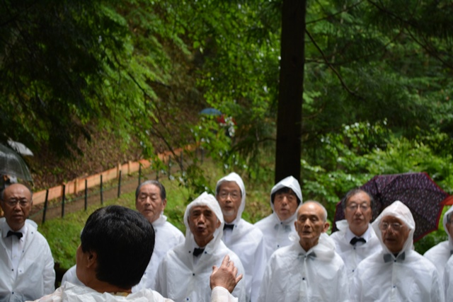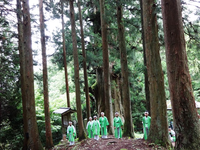 『矢立の杉』の合唱 静寂な地に神聖な歌声が響き渡り、式典が始まりました。