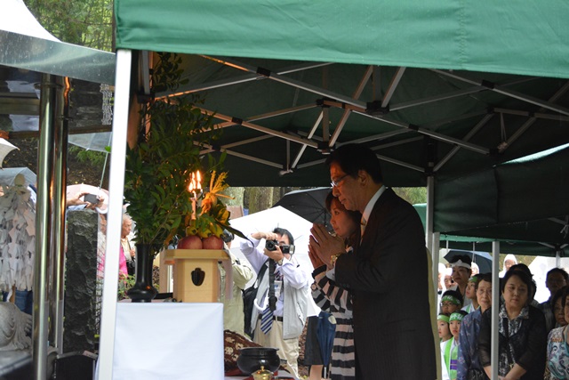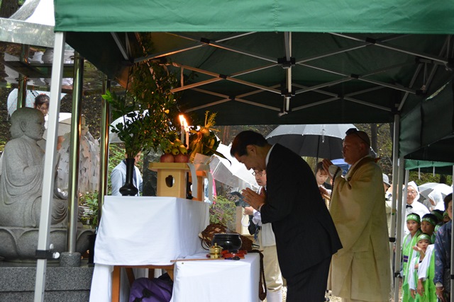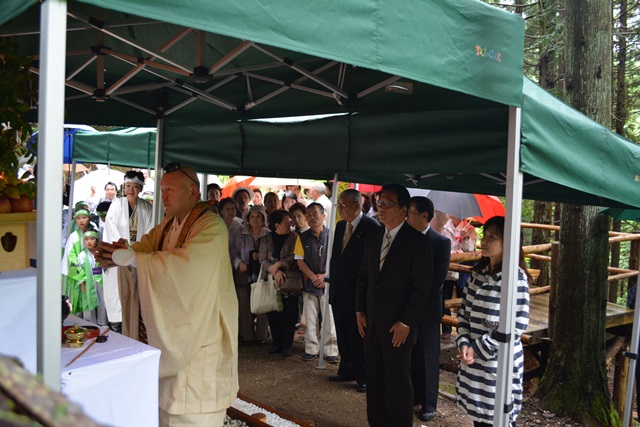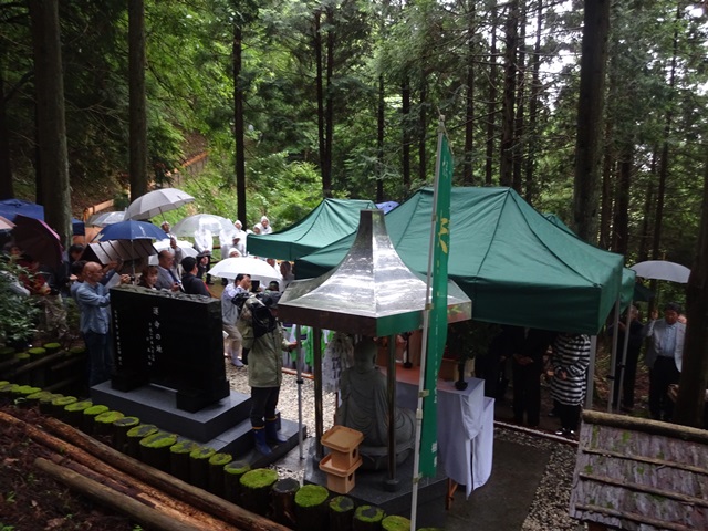 その雨の中で笹子の矢立の杉において第4回『矢立の杉・身代り両面地蔵菩薩』年次大祭が行われました。