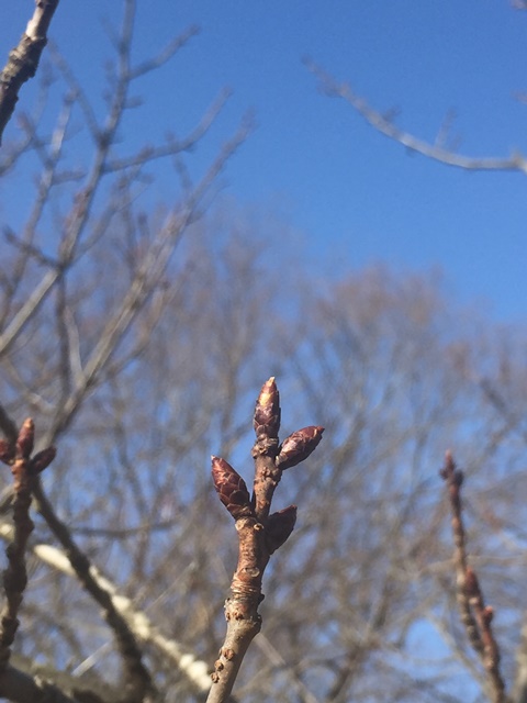 山頂の桜の蕾もだいぶ膨らみ始めています。