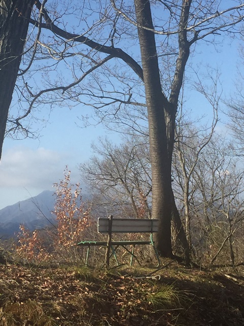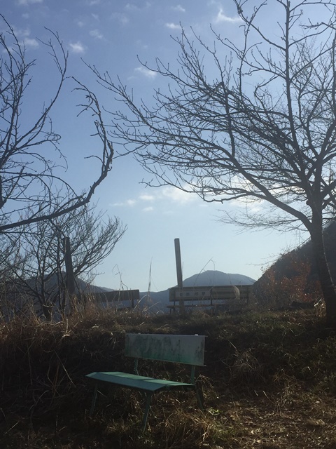 むすび山の山頂はこうしたベンチも置かれ、市内を一望できます。