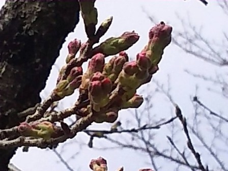 お伊勢山の桜は、大分ピンクになり、今週末には開花しそうです。