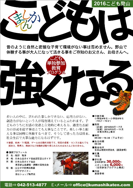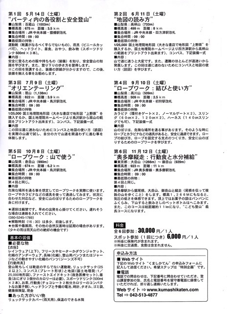基礎登山講習と子供登山教育プログラムのお知らせ(2016.4.10)