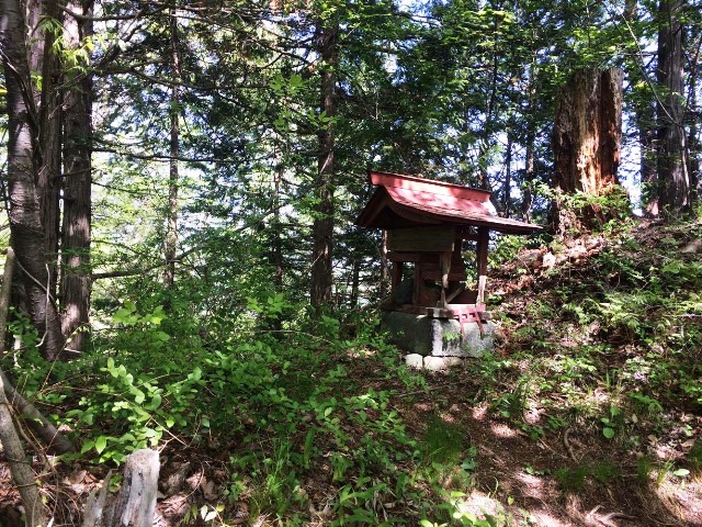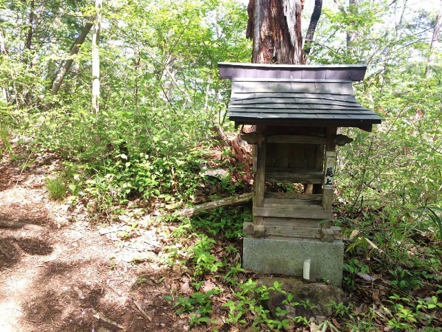 むすび山から高川山に向かう途中、花咲地区に降りる分岐の 尾曽後峠付近にある祠