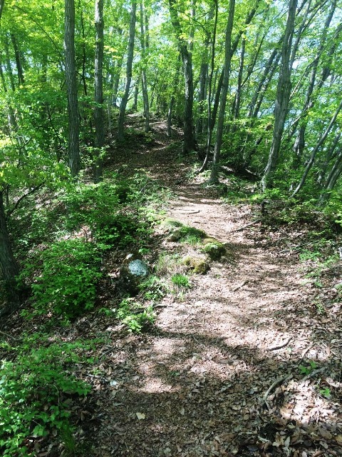 リニアモーターカーが走り去る所を見下ろすことも出来ます。 山頂から初狩駅への道 玉子石