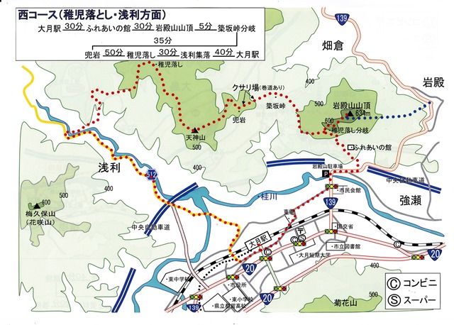 →浅利→大月駅 この西コースは、おおよそ3時間半から4時間ほどのコースタイムとなります。