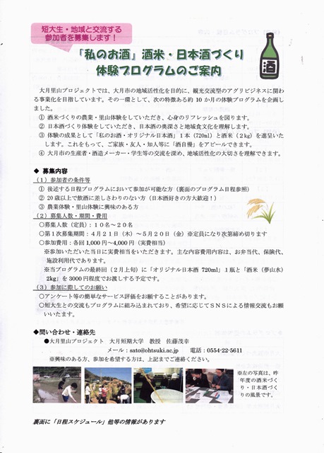 大月短期大学の生徒たちと酒米と日本酒作り(2016.5.12)