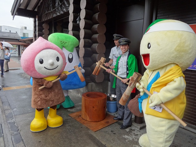 JR大月駅長さん・富士急行大月駅長さんや桃ずきんちゃんも参加して