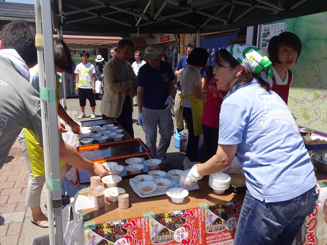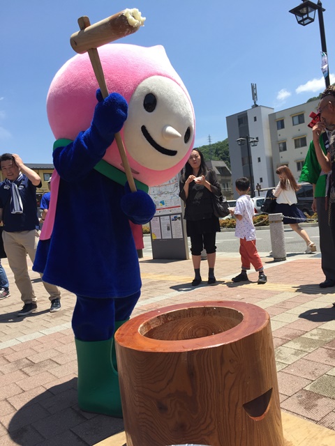 富士山世界文化遺産3周年のお祝いの餅つきが終わりました。(2016.6.20)