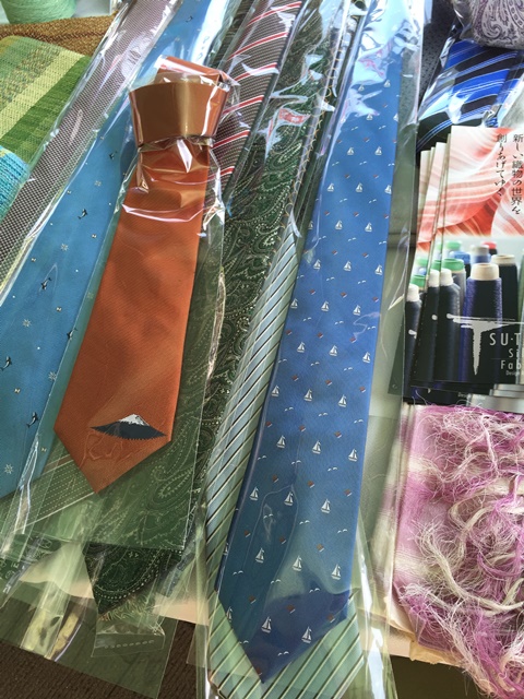 伝統産業の大月織物・・スカーフやネクタイが沢山並んでいます。