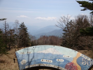 頂上に行くとこんな看板が有ります。天気が良ければ500円札と同じ富士山が 見られます。