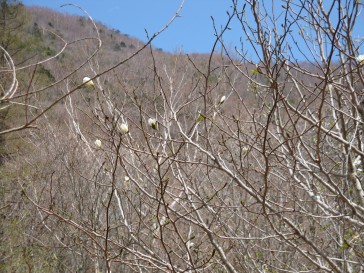 雁ヶ腹摺山の山頂はまだ芽が吹き始めたばかりでしたが