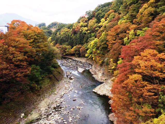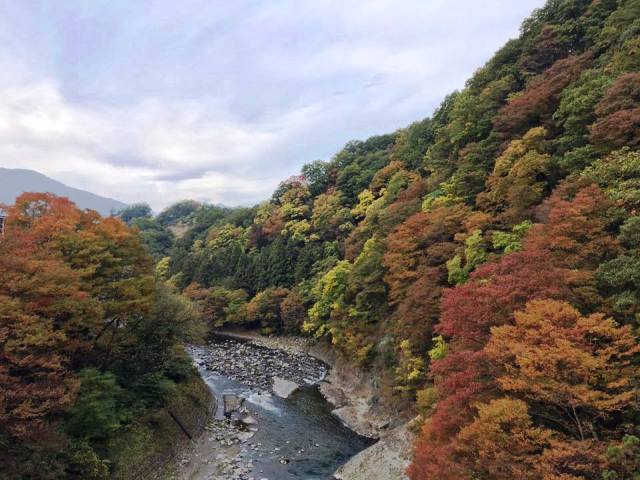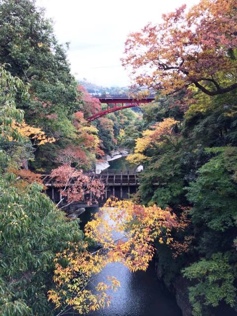 本日の猿橋の様子です。見頃は未だこれからですが綺麗に色づきが始まっています。