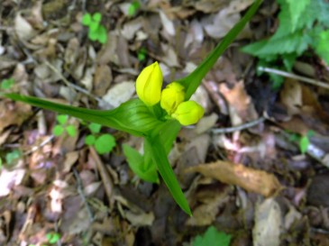 キンラン(金蘭) ラン科 晴れると花が開くようです。 愛宕神社コース中間点