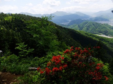 ヤマツツジと富士山(良く見えない)天狗岩より展望 山の花々を見に大月の山々に登ってみませんか??
