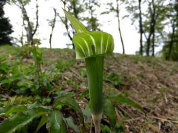 マムシグサ(サトイモ科)これから茶色に変わり赤い実を 付ける。