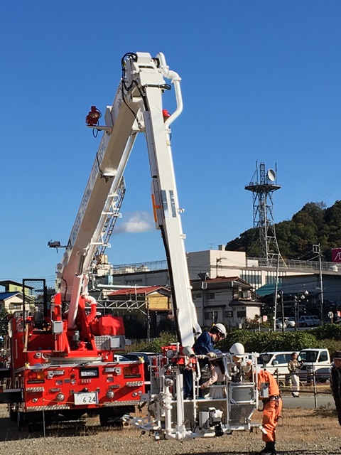 はしご車搭乗体験は勇気のある元気な子供たちに毎回人気の体験コーナーです。