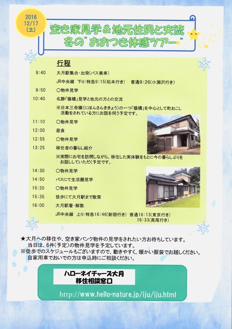 2016年冬のおおつき体感ツアー・空家見学&地元住民と交流のお知らせ(2016.11.16)