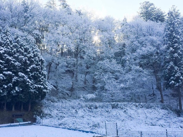 今朝は一面が銀世界となっています。