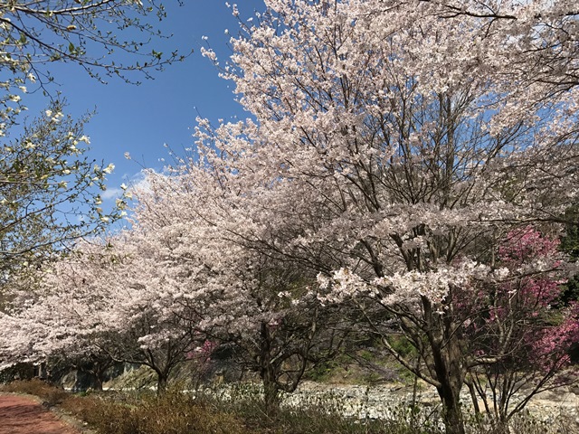 猿橋近隣公園は10種類ほどの様々な桜の花が順繰りに咲いて行きます。