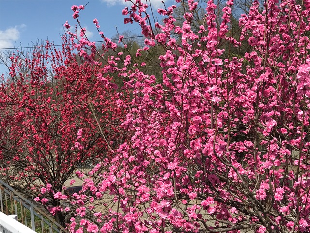 川沿いの花桃も見事に満開です。 鮮やかな色の花々が眩しい光景ですね(*^^)v
