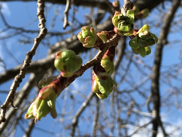珍しい色の桜の花 御衣黄桜の蕾もだいぶ膨らんできました。後数日で開花ですね。