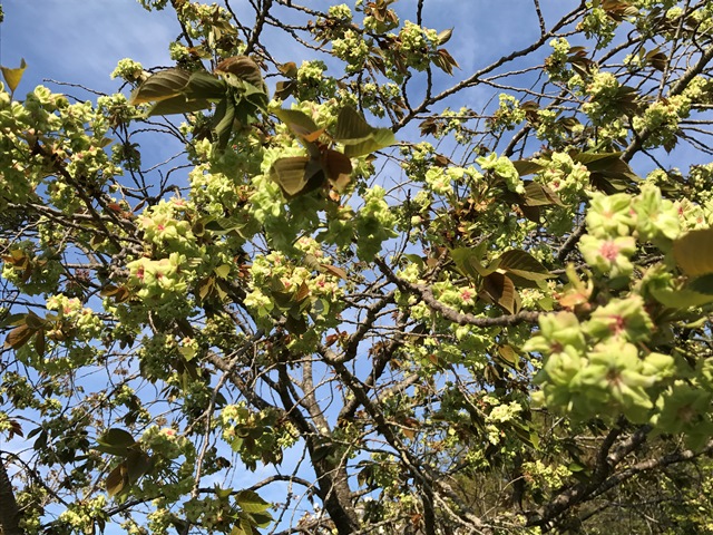 御衣黄桜も見ごろとなり、八重桜と一緒に楽しめます。
